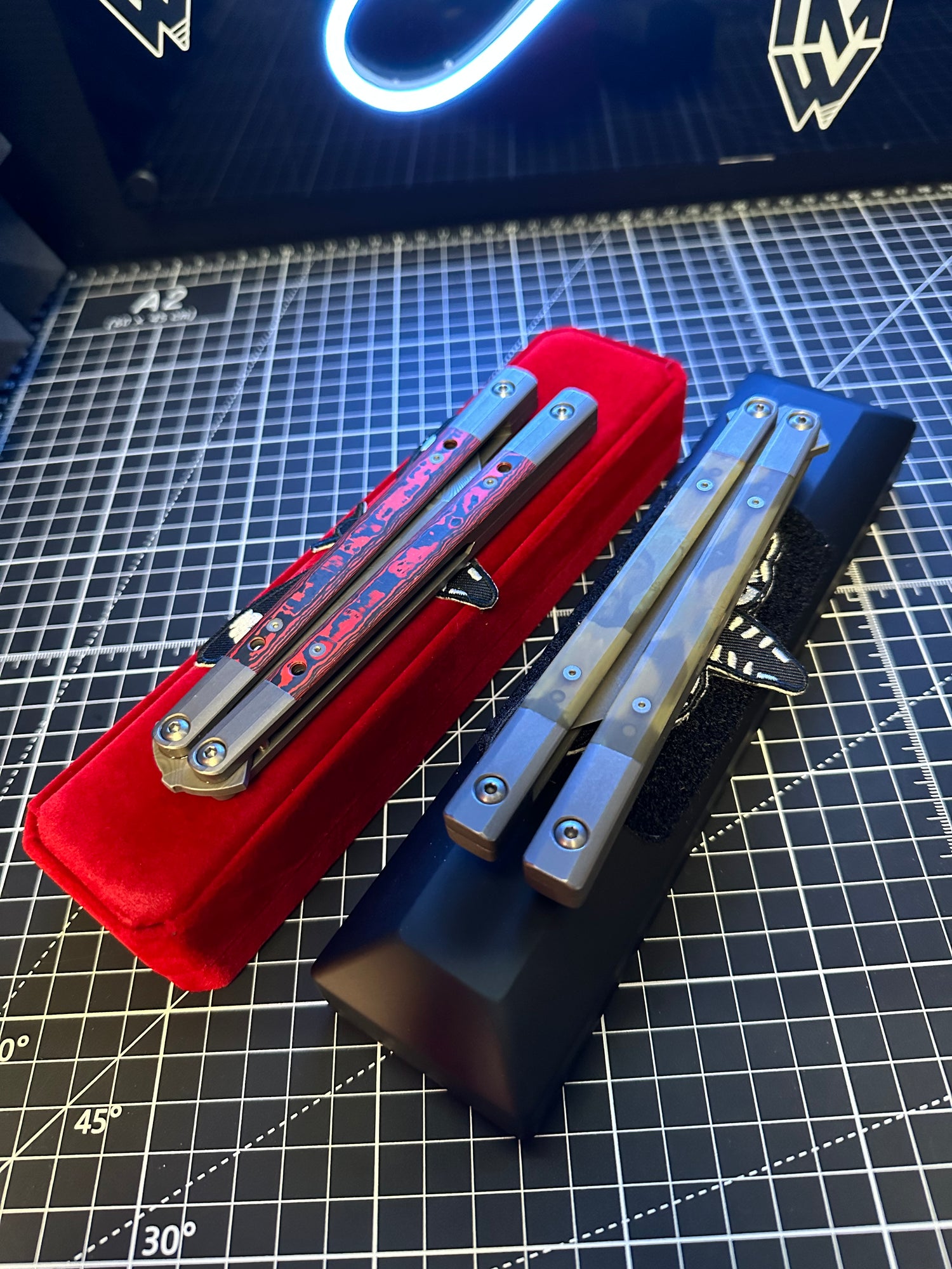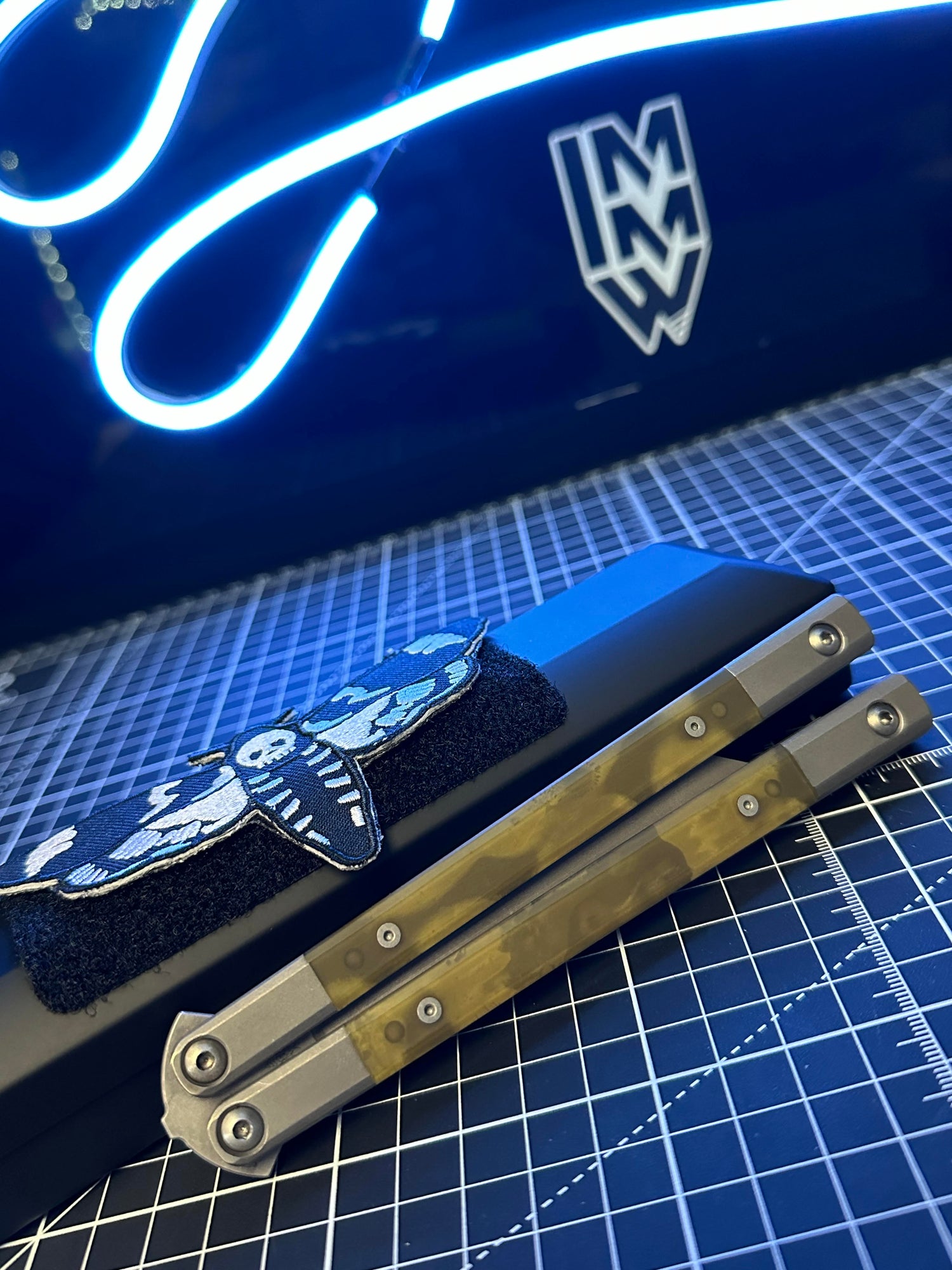 When designing the DH, old school style with new school tech became the goal. Giving homage to brands like Benchmade and others we strived to create a modern Bali with old school inlays but to be Titanium with bushings and weighted properly to flip. The Deaths head moth pays homage to the original butterfly logos on the blade. Also having a blasted and tumbled finish for perfect grip. And here it is. Each one will be a one of a kind piece.