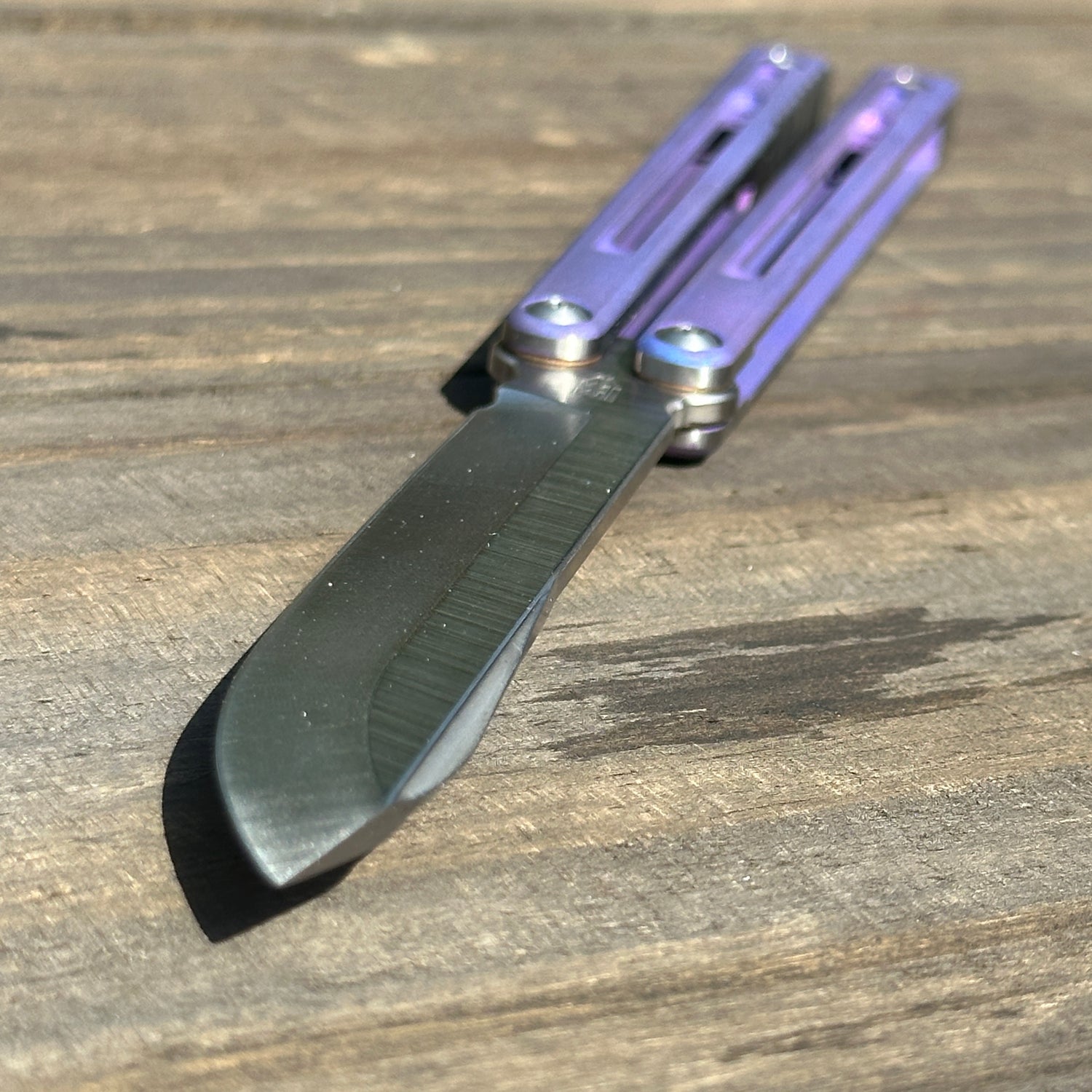 Using Titanium ChanSandwich Handles and Aebl Steel Blade, this blade is tuned and sharpened for an amazing, and exhilarating, flipping experience.